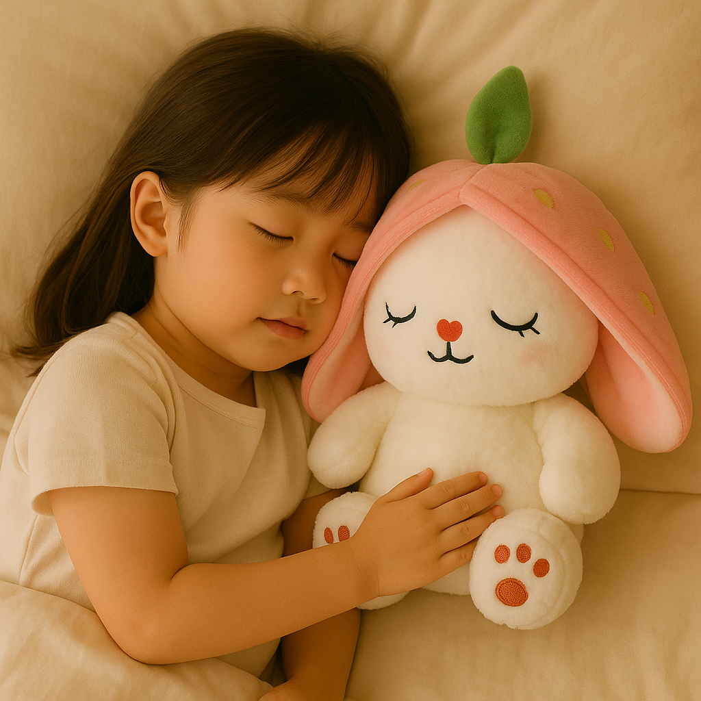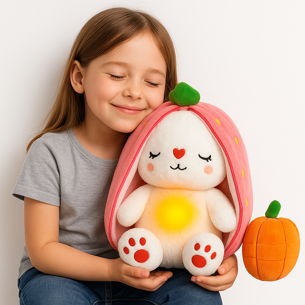 このふわふわぬいぐるみは、やさしい光と音でお子さまの心を落ち着かせ、ぐっすりとした眠りへと導きます。