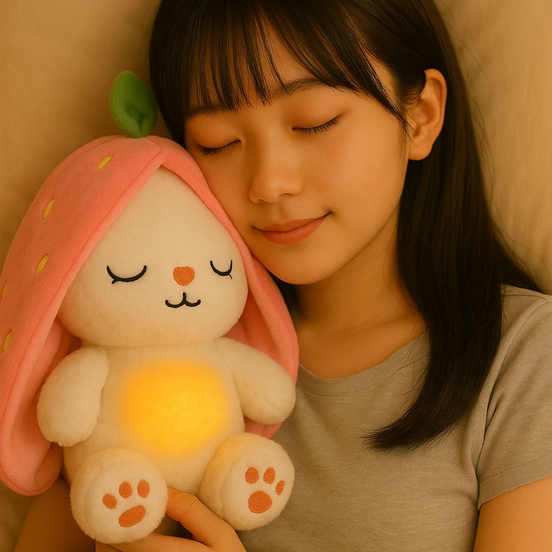 はい。内蔵されたライトがやさしく点滅することで、ぬいぐるみが「呼吸」しているように見えます。リラックス効果があり、お子様の寝かしつけにも最適です。